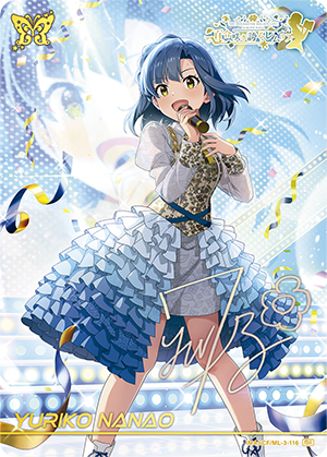 SRカードを豪華に加工したMLR(ミリオンライブレア)はそれぞれのサインが光り輝くスペシャルな1枚となっております!