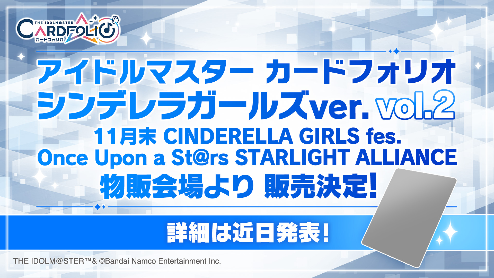 詳細は後日発表予定ですので、アイドルマスター カードフォリオ公式サイトやアイドルマスター シンデレラガールズ【ブランド公式】をチェックしてくださいね。